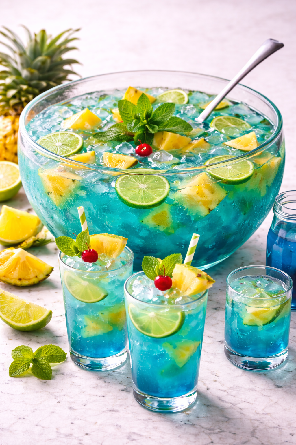 large batch cocktail kit Recipes Spring Fling Punch Raspberry Peach Punch Mermaid Rum Punch Bahama Mama Punch Blue Hawaiian Punch Shark Bite Punch Apple Cinnamon Punch